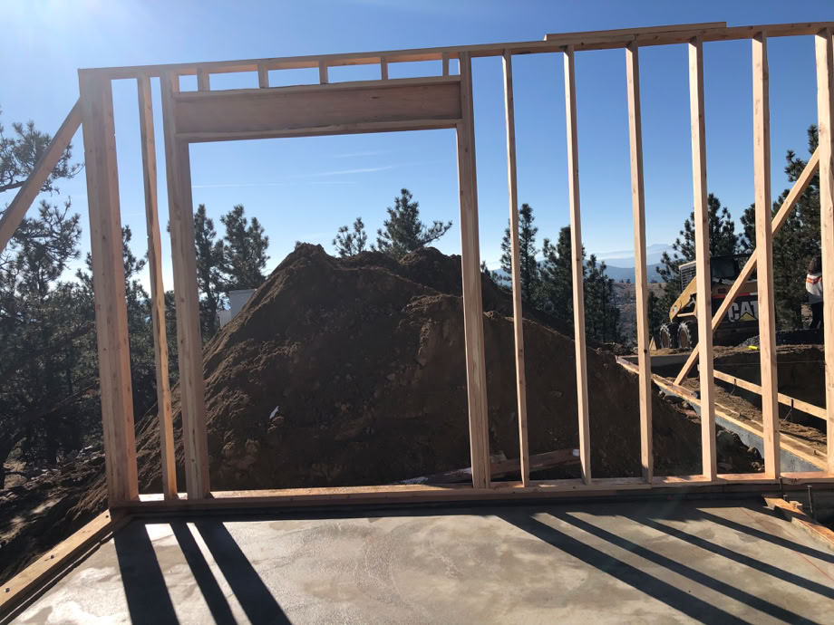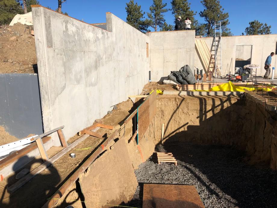 The very first wall section is up! This is the lower level south guest bedroom’s south wall, with the big sliding door to the lower deck. Once again, it’s hard to get a feel for things from the plans. That wall is 11’ tall, which means the lower floor ceilings will be 10’ high!