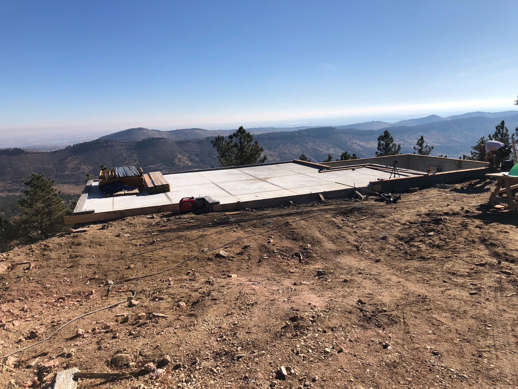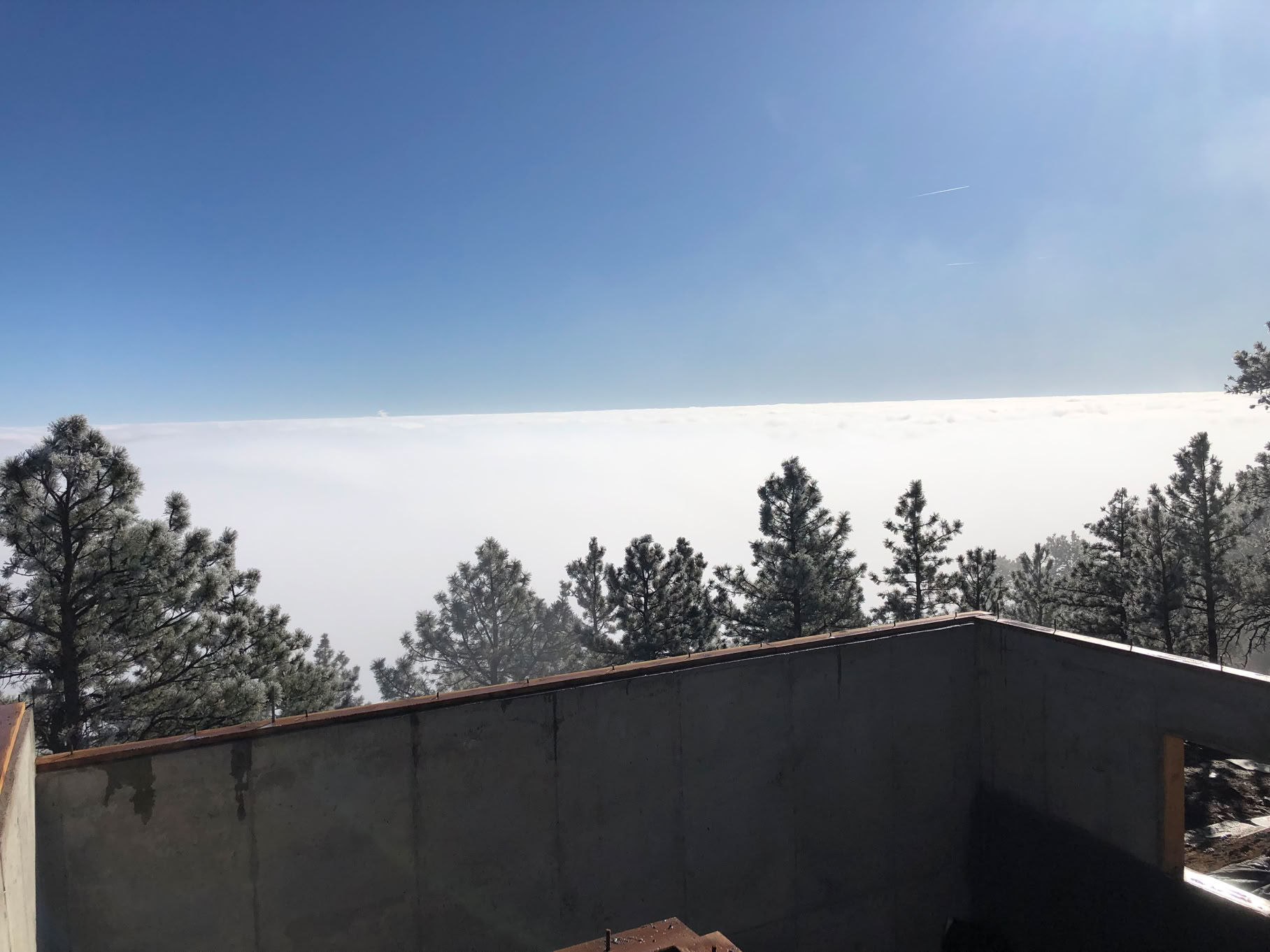 Now, we’re completely above the cloud tops. That is not snow that we’re looking at. This is looking due east and those are the cloud tops that actually sloped up to the top of the hogback. The thin cuts in the garage floor are called control joints. They control where the inevitable cracks in the concrete will occur.