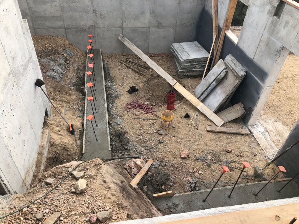 The Grotto footer. The flat sheets stacked in the right are what will be used to form up these walls. These walls would have been poured at the same time as the rest, if we’d understood just how much volume the “crawl space” on the plans represented.