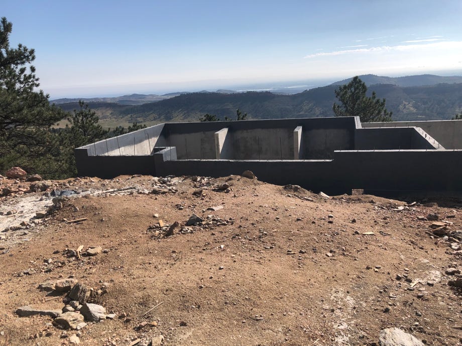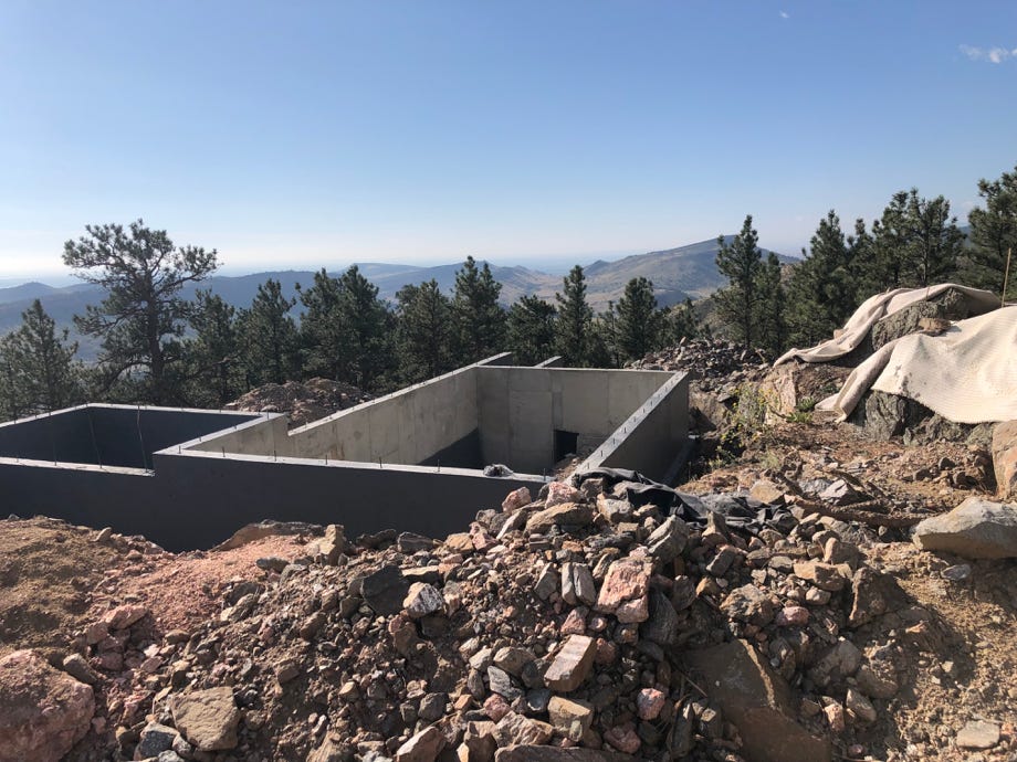 Martin had an idea about the new space on the lower level being opened up. Since we’re not filling the space under the office, laundry and mudroom, why not use it? He thought about not putting a complete wall on the west, but incorporating the solid pink rock formation to form a grotto. Fänas really like the idea.