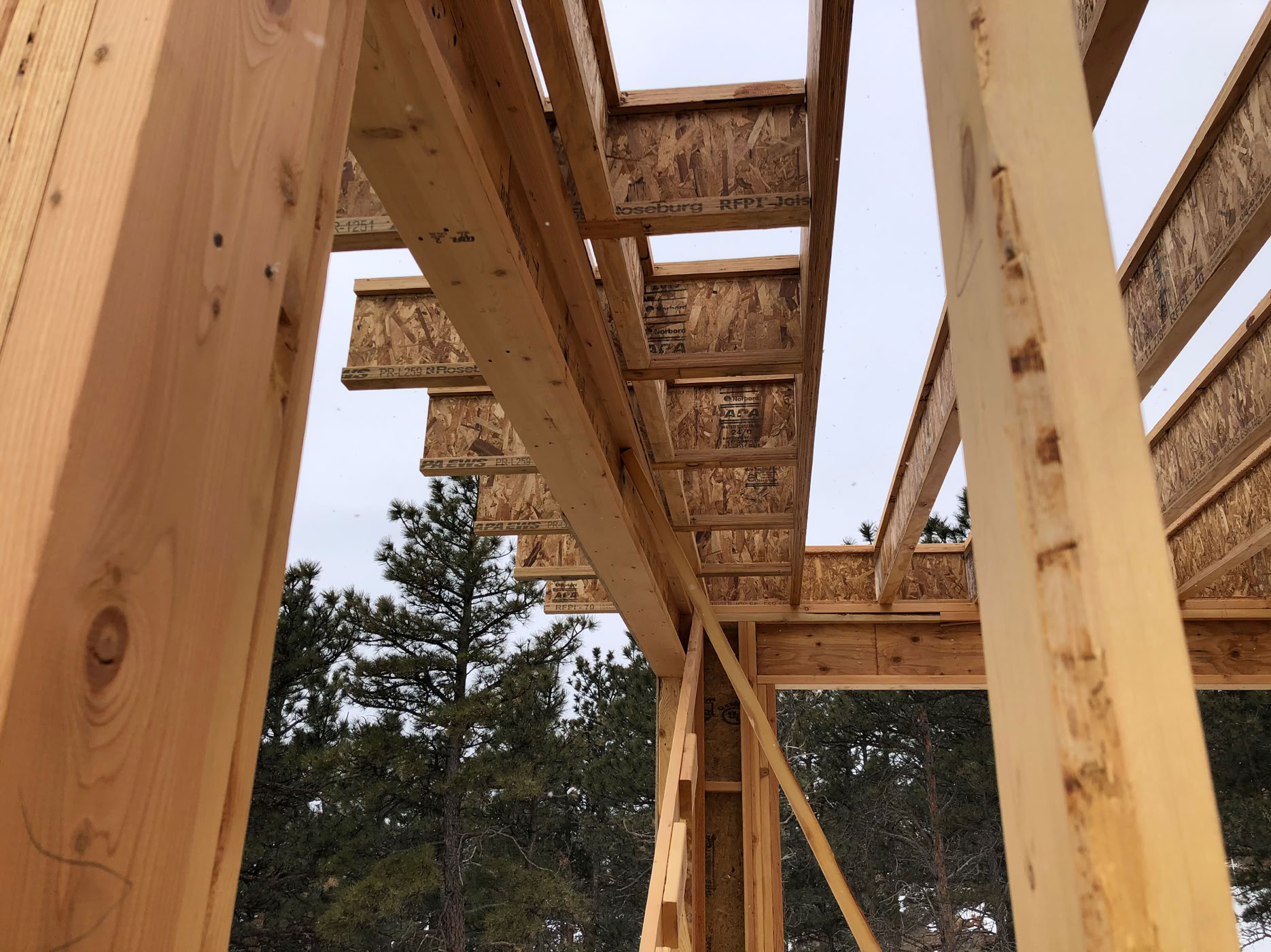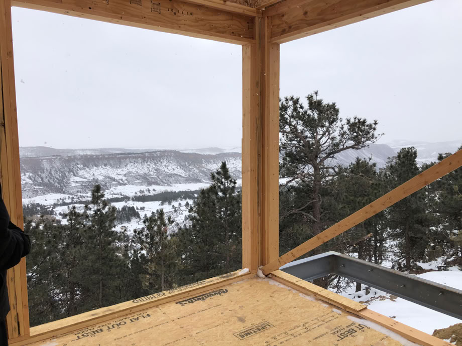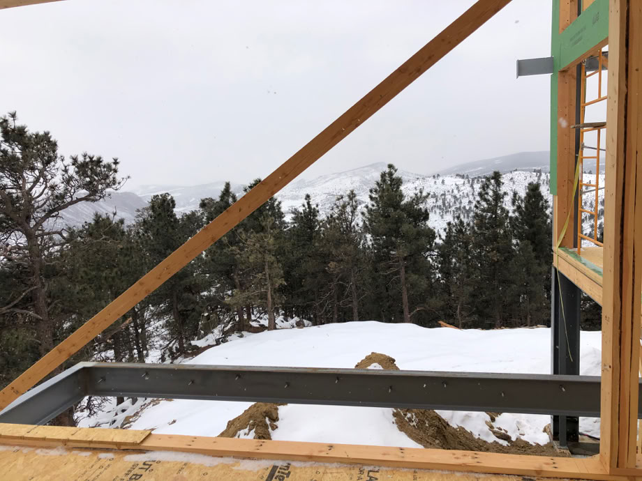 Looking due south from the east master bedroom. That diagonal is just temporary bracing.