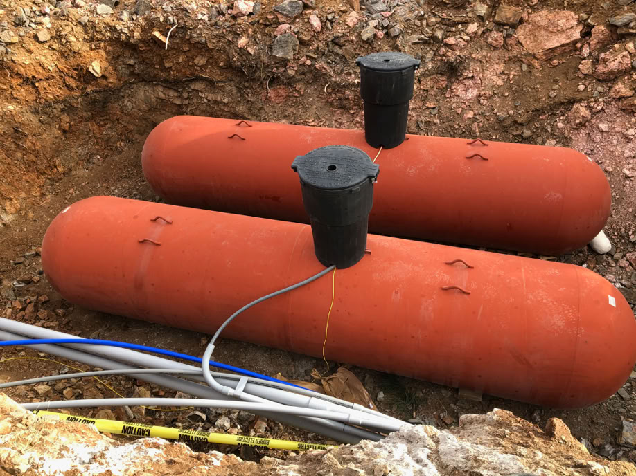 The propane tanks have arrived on January 3, 2020. Those monstere are 16 feet long! It’ll be a week before the fine gravel bed they’re placed on is ready and the crane is up to place them.