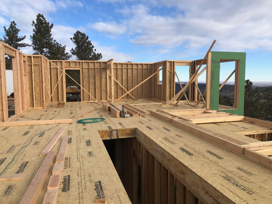 The propane tanks and utility trench are backfilled and more of the upper level framing is done.