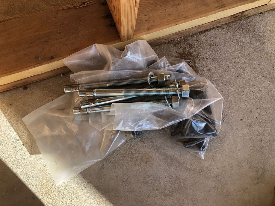 These are the big anchor bolts that tie the W16 x 50s at the bottom of the moment frame to the reinforced concrete footers. These bolts are 3/4” x 10”, which makes them a special order item, since 3/4” is only commonly stocked to 8” length. 12 of them are required.