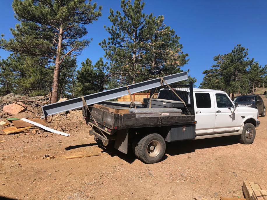 Here’s what brought all of the windows up. It’s pretty much full and has about 50,000 pounds of windows in it, pushing the rig to about 70,000 pounds, about 10,000 under the maximum permitted road weight of 80,000 pounds. Glass is heavy!