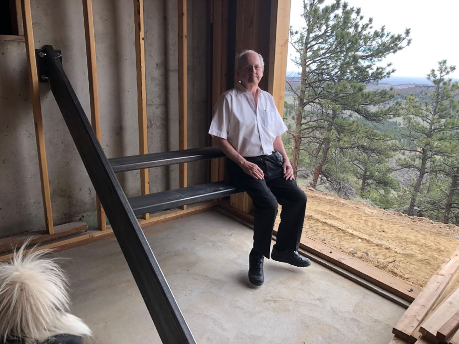 Bill on the extreme end of the stair tread. It deflected down about 1/2” which is not acceptable. That’s Yuka’s big bushy tail at the left 😉!