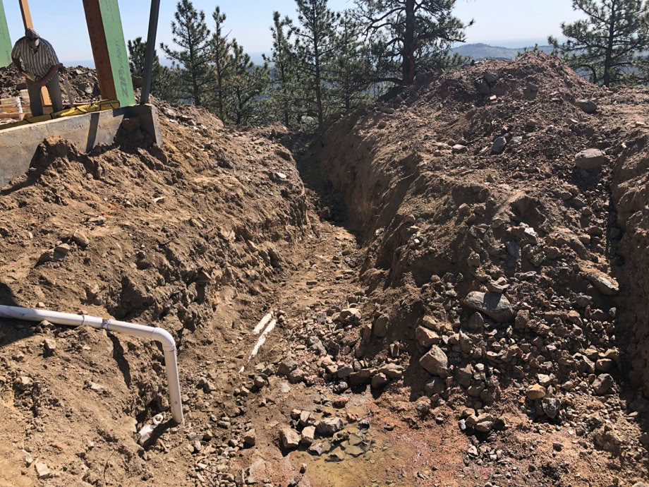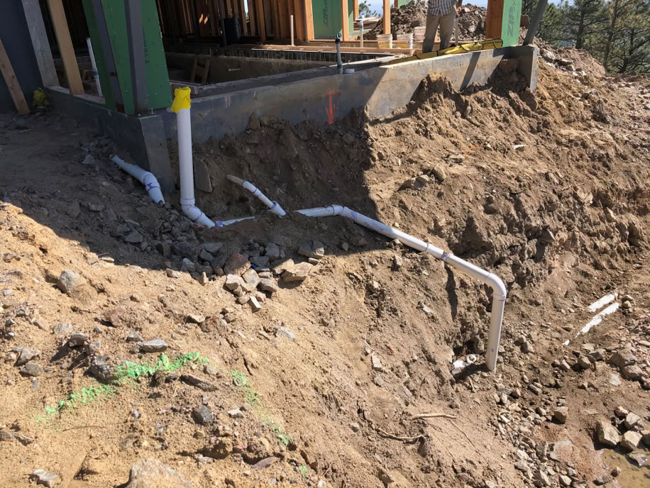 The leftmost pipe is the house perimeter drain, the vertical riser is a cleanout a that needed to be added since the drain run is so long. The rightmost pipe is the pool perimeter drain.