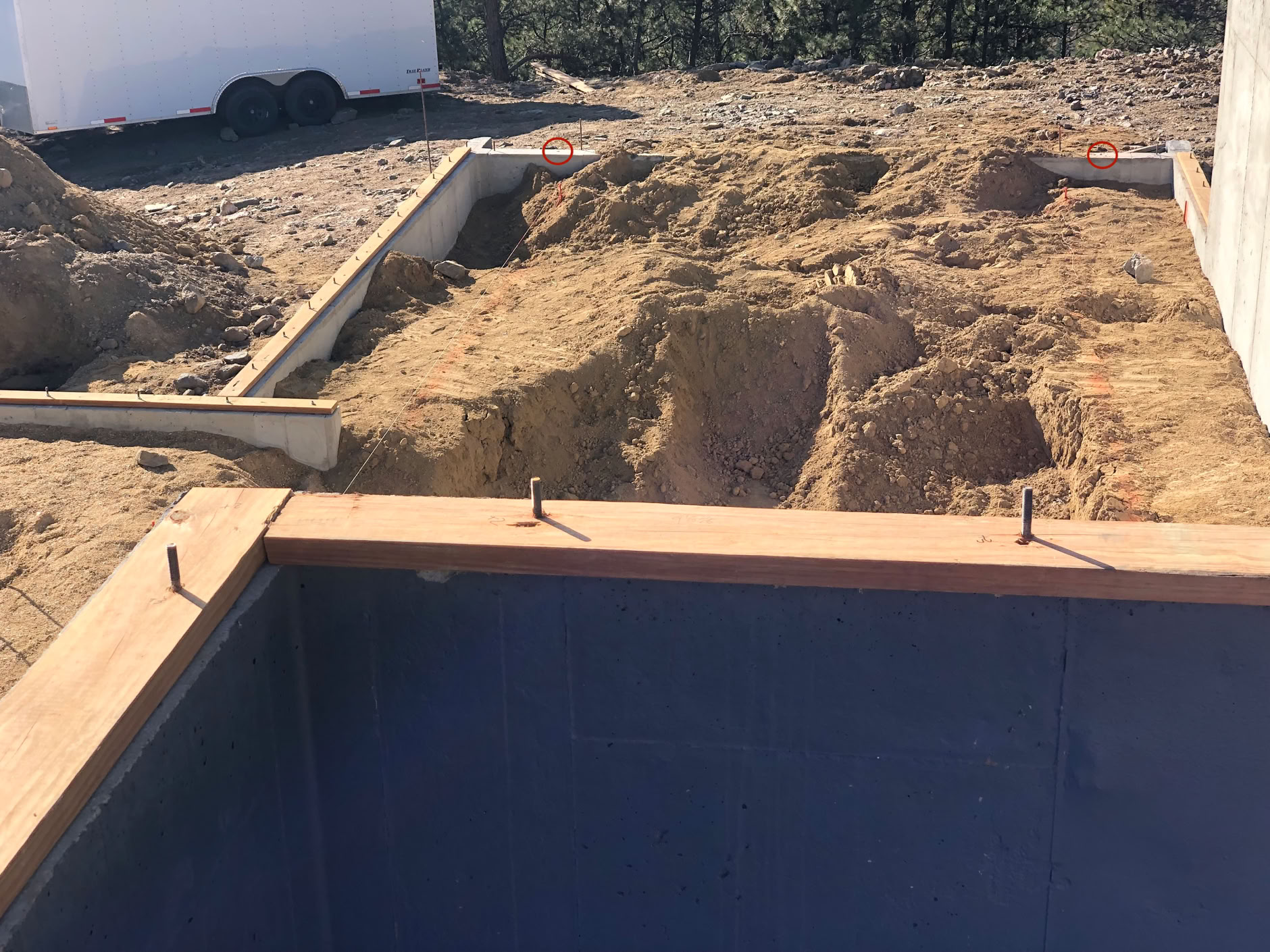 As you can see in the above photo, the section of wall at the top, where the lower sliding wall will be mounted, has had all the studs cut off (two of them are circled in red) and has no wood sill plate either. That’s because the sliding wall is designed to mount directly to the concrete, ensuring that it will see no vertical deflection. This does complicate the floor design, since the tile height has to be exactly right to fit into the base of the panel.