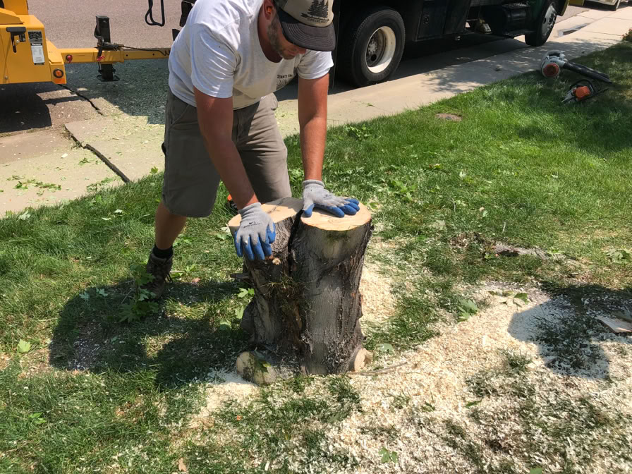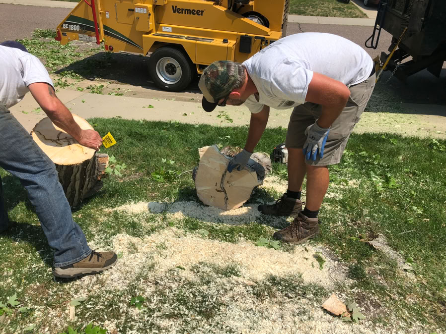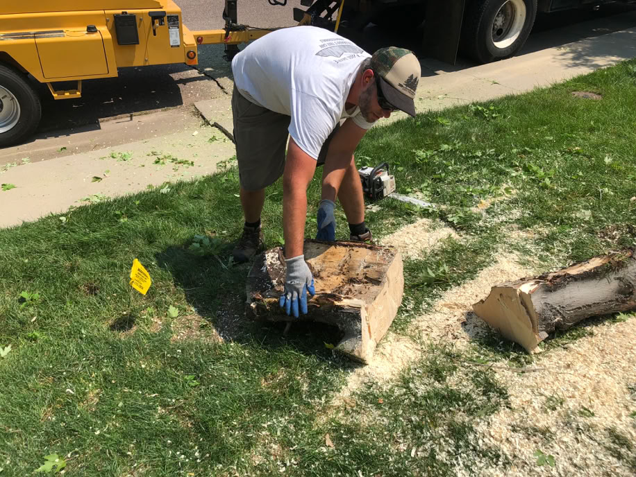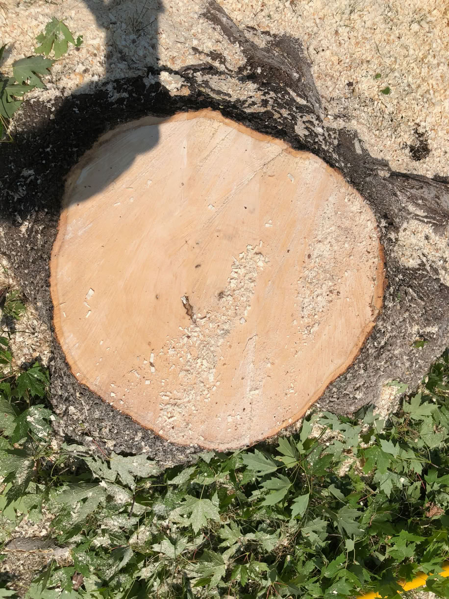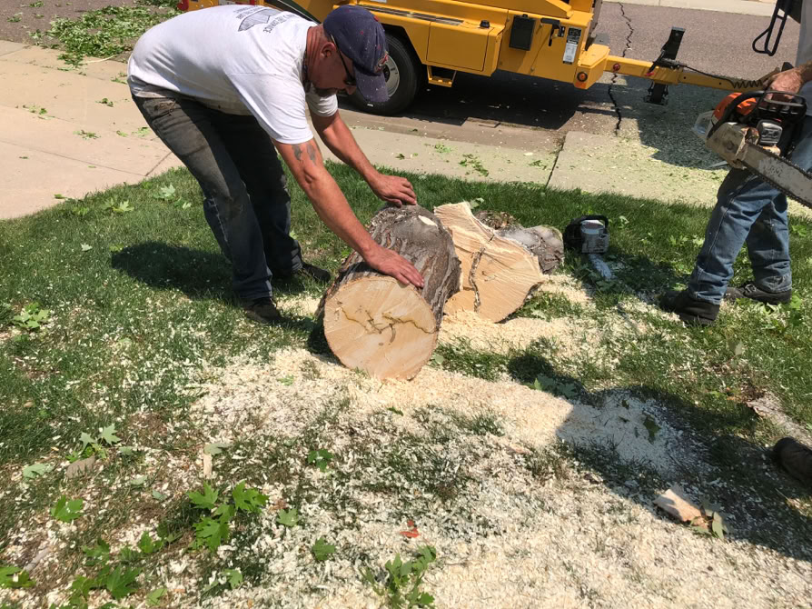 The section that’s being rolled is the very bottom most section that the arborists could safely cut. If you go any lower, you risk hitting rocks that the tree grew around. You can see that the split goes all the way thru this section.