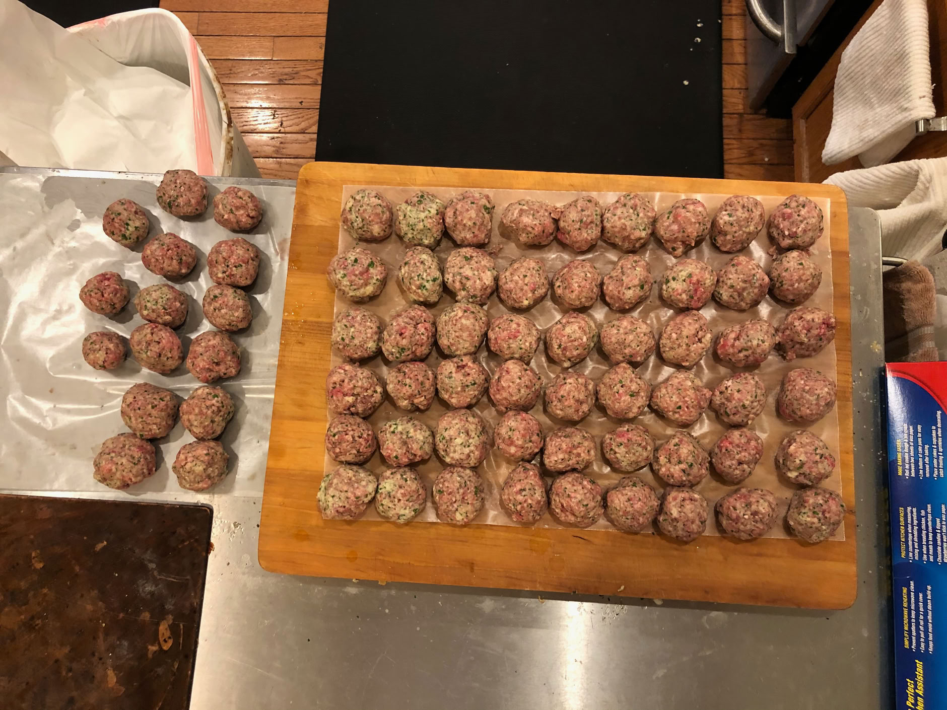 Sixty nine, yep 69, meatballs ready to fry and eat and freeze.