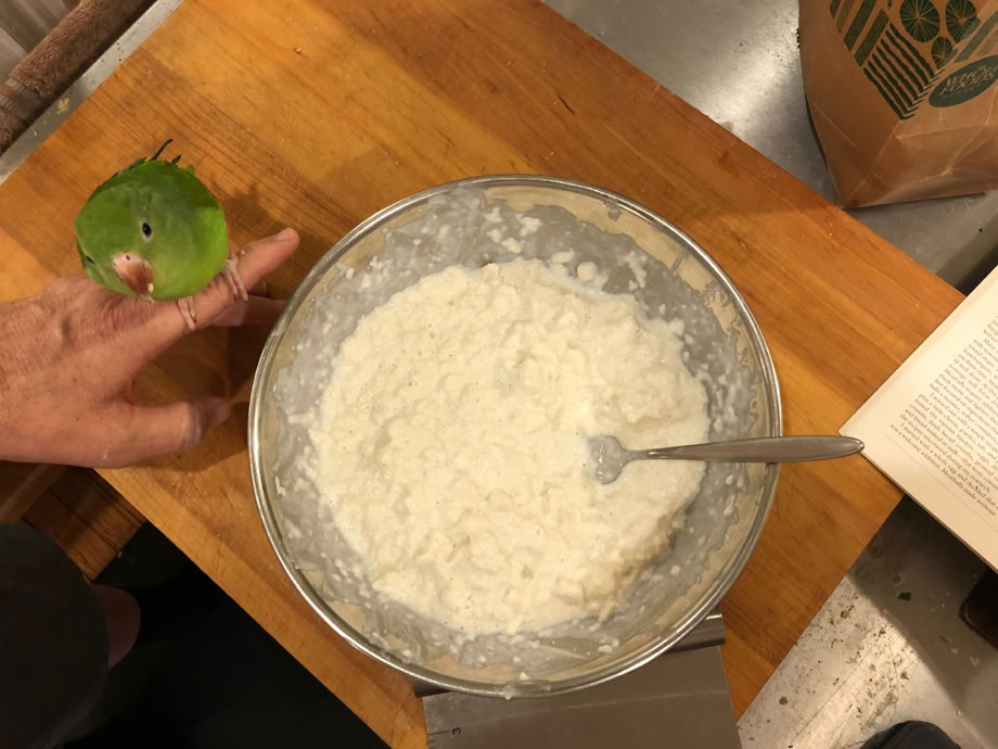 First thing to do is make up the tapenade, with help from our able beaked assistant this took only 10 minutes instead of the usual 5!