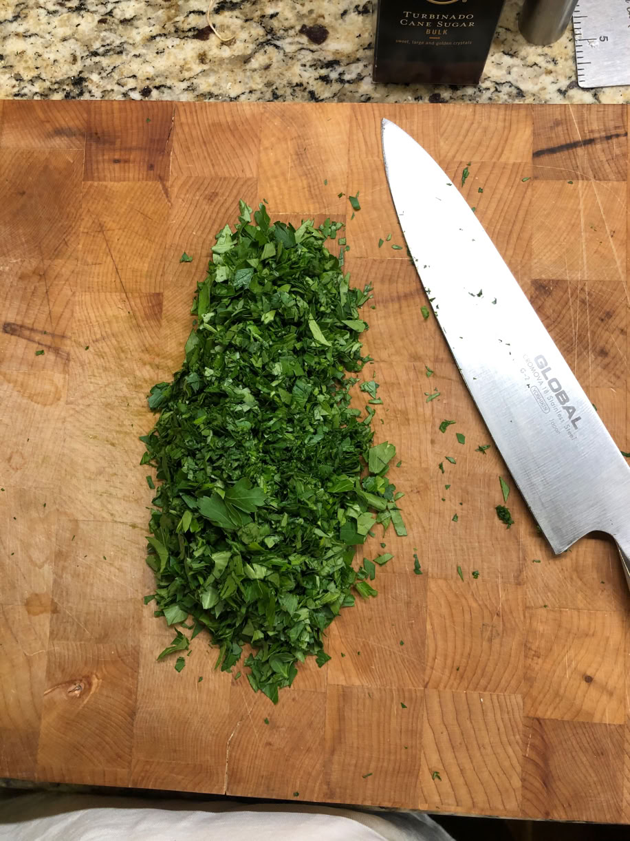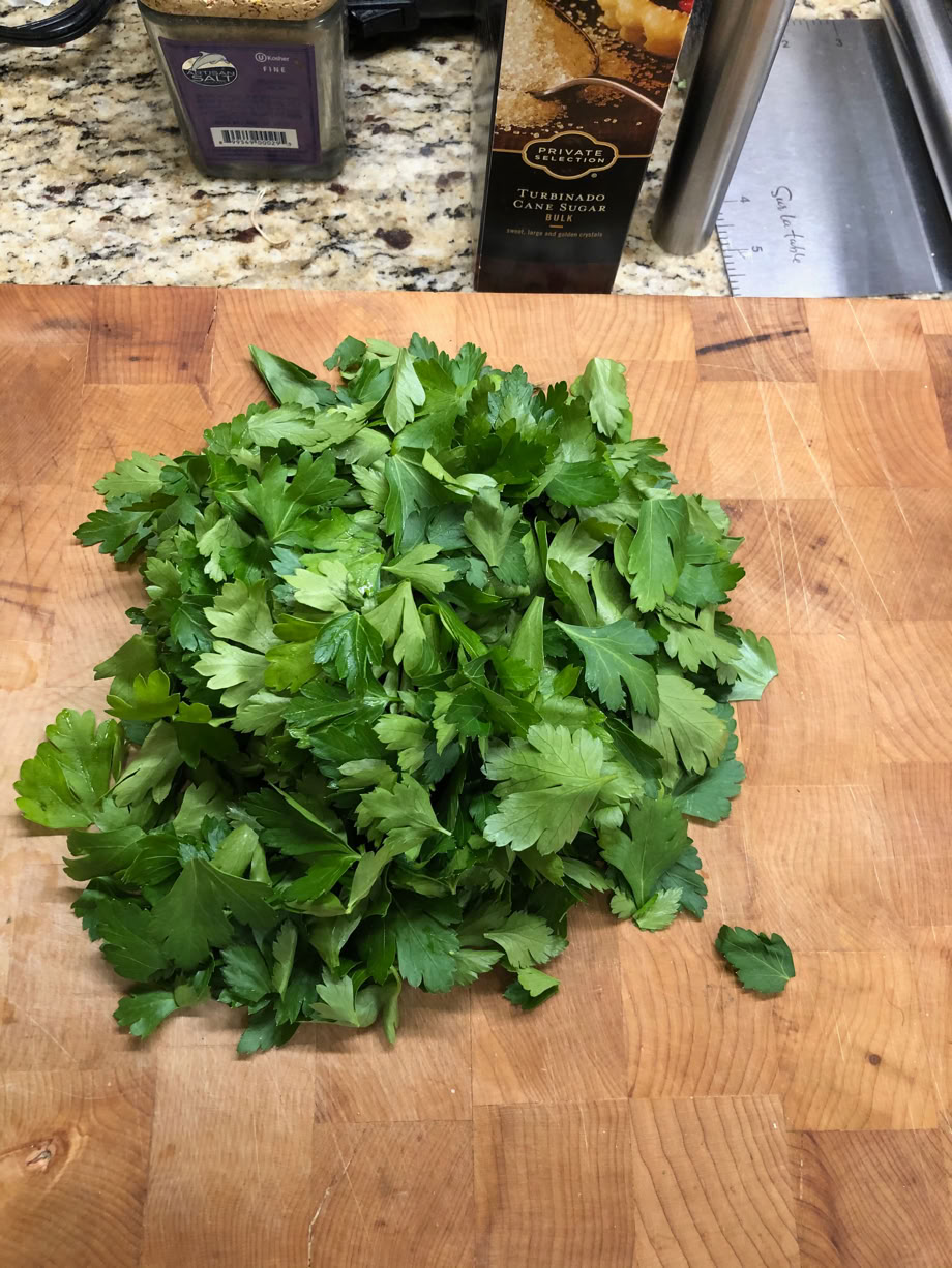 That’s what a full 2 cups of unchopped italian flat leaf parsley looks like on the cutting board