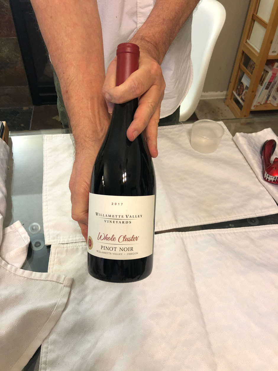 Tonight’s wine is a wonderful Pinot Noir by Willamette Valley Vineyards. It’s their Whole Cluster 2017, meaning that they used clusters of grapes, instead of whole bunches. Wine Spectator didn’t rate the 2017, but the 2018 is a good solid 88.
