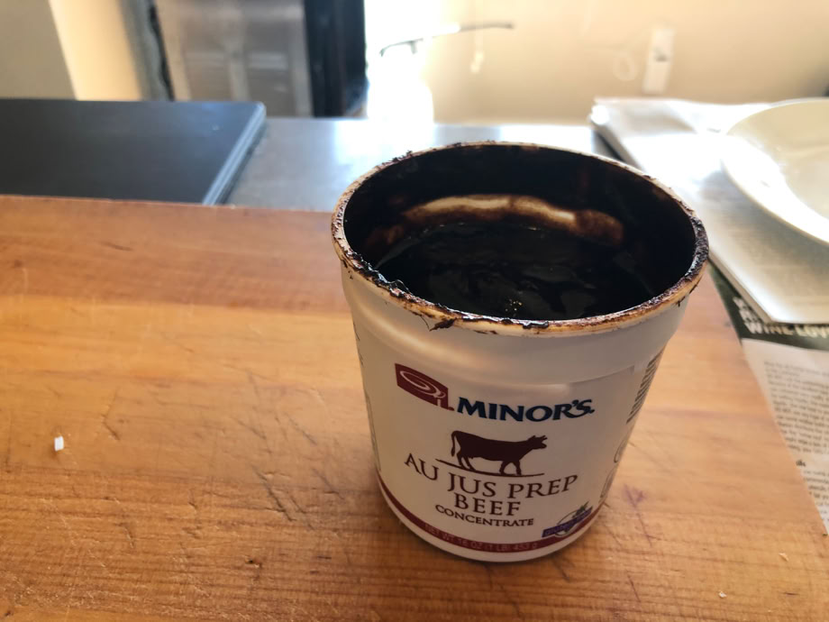 The real secret to the sandwiches - Minor’s Au Jus concentrate from Soupbase.com.